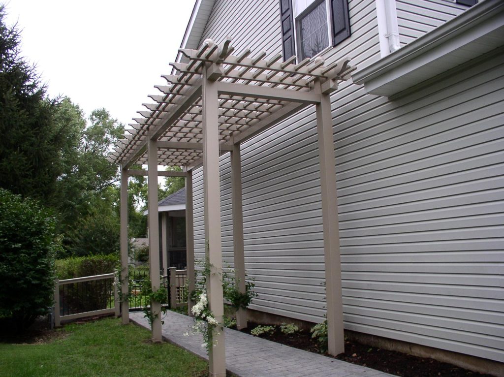 Pergolas are a structure typically made up of an open lattice, grid, or similar patterned roof, supported by sturdy columns in all four corners. Made for the outdoors, they can be attached to your home or freestanding in your yard. Sometimes they are used over a patio space, or smaller versions in a garden for plants that thrive when they can climb or over a beautiful walkway for some added shade and flair!